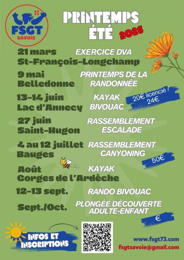 Pour cette saison 2025/2026, la Commission Ski de la FSGT73 vous propose plusieurs sorties ski alpin, ski de fond, ski de rando, raquettes et matouille, ainsi que des formations sur la recherche de victimes d’avalanche DVA.