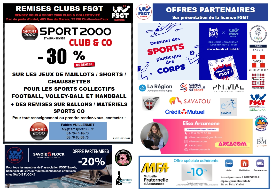 Licencié·e FSGT Savoie, avec ta licence omnisport tu peux pratiquer plusieurs activités sportives à la fois et également bénéficier d’offres spéciales auprès de nos partenaires !