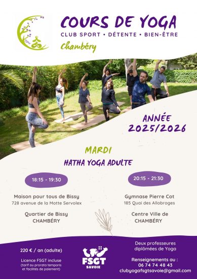 - le mardi de 18h15 à 19h30 à la Maison pour Tous de Bissy, 728 avenue de la Motte Servolex, à Chambéry