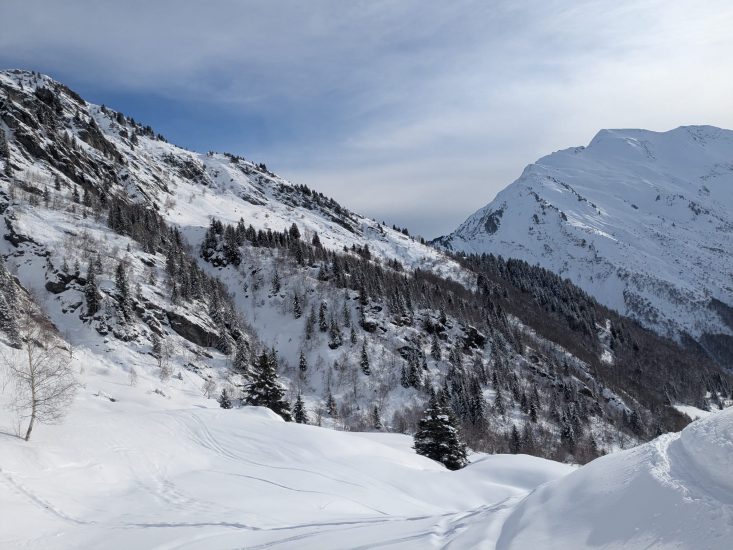 Arrivé sur le secteur, une prise de décision collective s’est imposée, fondée sur l’analyse partagée du bulletin de risque d’avalanche, l’étude de l’itinéraire via l’application Skiturunguru et l’application de la règle du 3/3. Ce choix responsable a conduit à faire demi-tour, permettant une très belle descente dans une poudreuse généreuse, en skis comme en splitboard.
