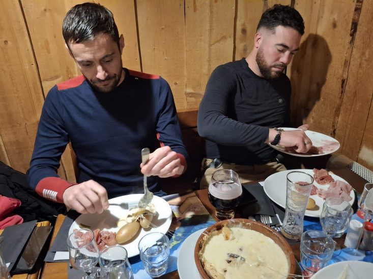 À l’arrivée, Guillaume et son équipe de « La Bergerie » nous avaient préparé la fameuse matouille😋, suivie du délicieux cèpe des Bauges en dessert. Un vrai réconfort après l’effort !