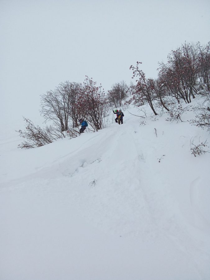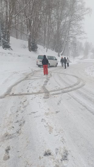 La montée fut épique pour arriver à Saint François Longchamp (chaînes, chaussettes…). Une partie du groupe a terminé à pied au départ des pistes à 1450 m.